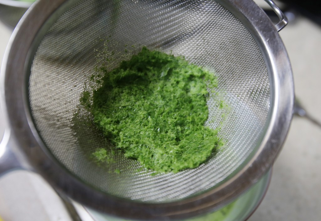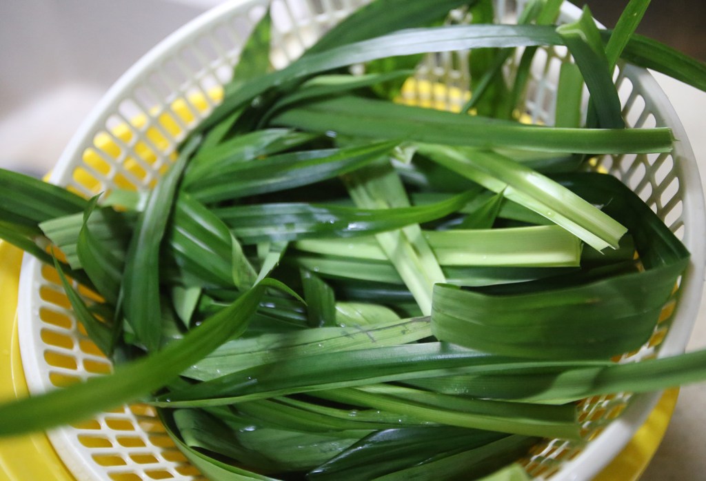 - Blend the leaf with water, sieve it and mix with sugar. We need only 50 ml. of pan dan leaf juice with sugar.