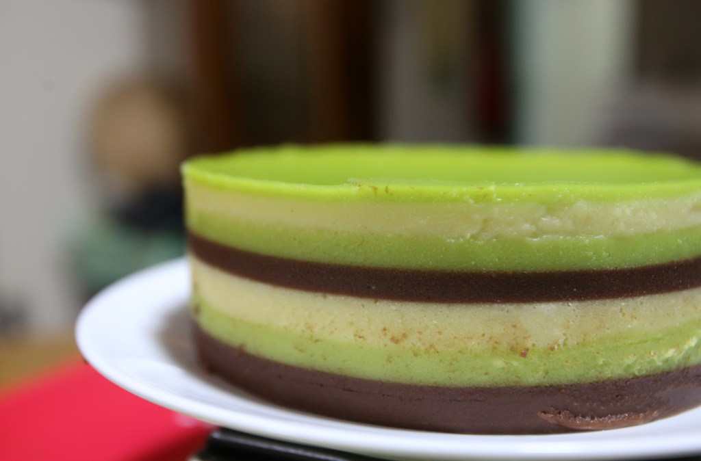Today I’m sharing another cake with a mysterious name – Bánh Bà Lai, if it’s literally translated into English, it means “The cake of Madame Lai”, but I’m not sure this is a right explanation. The cake normally has three layers with three different colors : green, dark brown and yellow. So to me it could be Bánh Ba Lai (i.e three layers, but with the time, by word of mouth, people mistakingly call “Bà”, i.e Madame, instead of “Ba” which means “Three”!