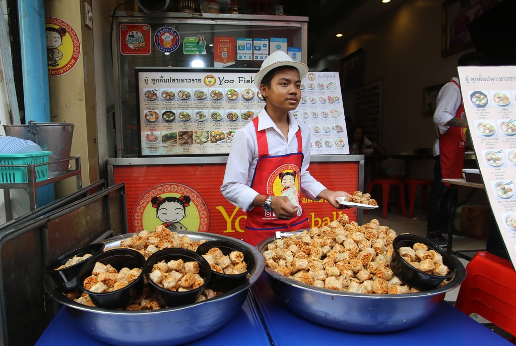 Tôi đến Yaowarat khi đã xế chiều, chợ tan nhưng hàng quán dọc đường bắt đầu nhộn nhip cho cuộc sống khuya! Thật ra street food tồn tại từ lâu ở Bangkok, không ai quên được món cá lóc bọc muối nướng, gà nướng ăn với cơm nếp…những năm sau này, một thế hệ mới được hình thành cùng với nhiều “món ngon vật lạ” ra đời đáp ứng thị hiếu giới trẻ ngày nay, không khác gì ở Việt Nam!