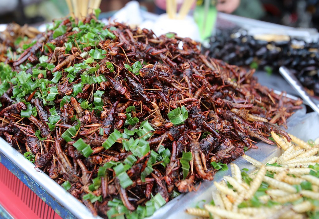 Nói đến món ăn hè phố, nhất là ở Thái, không bỏ qua được một đặc sản…châu chấu, dế, bò cạp…,khu phố Tàu cũng không ngoại lệ! Tôi ăn thử một lần bên Singapore khi công ty tổ chức team-work với nhau, ai cũng phải thử món bò cạp chiên giòn! Khá nhạt nhẽo, có phần vô vị…ăn hồi sau về nhà mới biết trong kẽ răng còn vướng cái chân hay cái càng của nó!