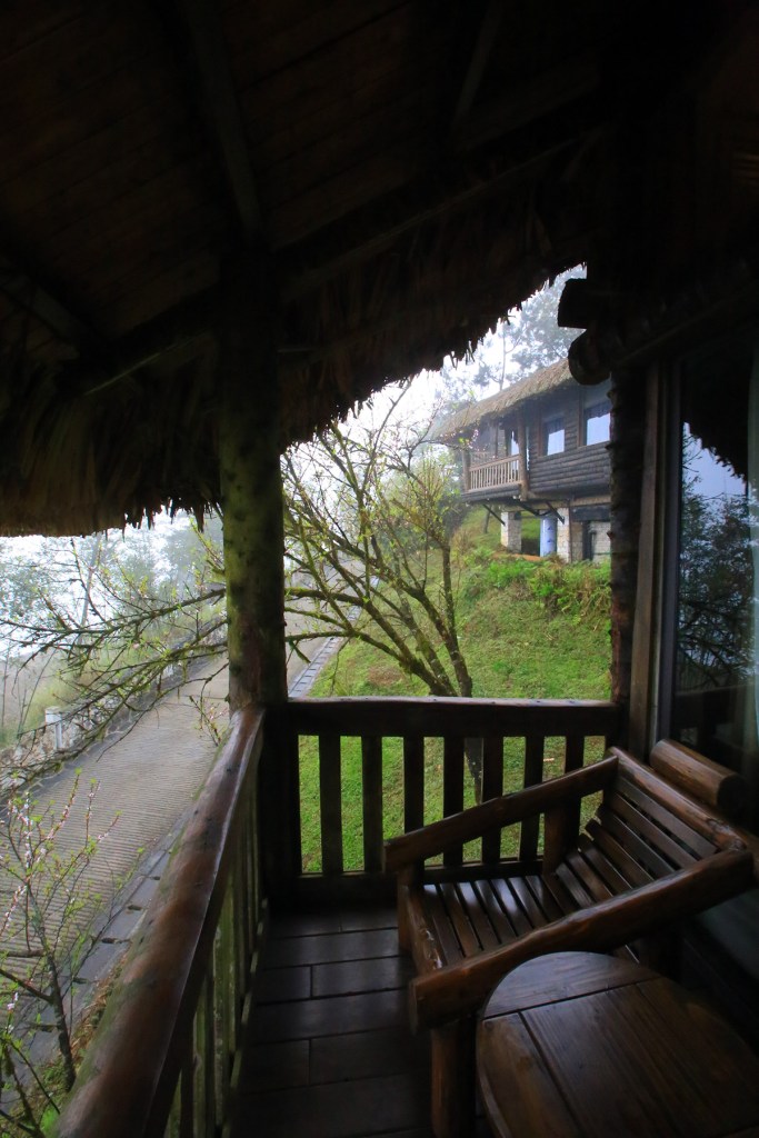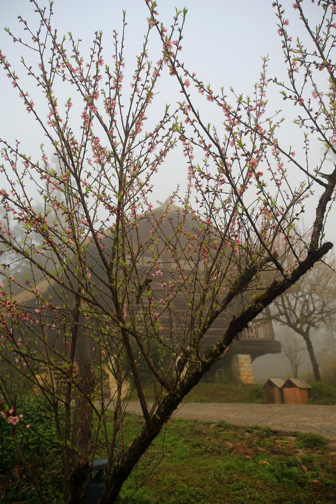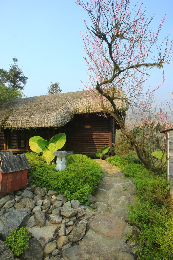Kỳ này tôi có ba đêm tại Jade Hill Resort & Spa, theo lời giới thiệu của một “phượt thủ” kỳ cựu, không phải căn phòng xi măng với ban công inox, mà nhà gỗ lợp tranh, rêu phong trên mái, có ban công gỗ nhìn ra thung lũng Mường Hoa, dù khó thấy được gì, có bồn tắm gỗ nhìn ra gốc đào vẫn còn hoa! Jade Hill chiếm một khu rộng lớn ven sườn đồi, như một ngôi làng thật đẹp với những con dốc, những khúc quanh, đâu cũng có cây đào dáng đẹp hoặc những rặng thông cao vút.
