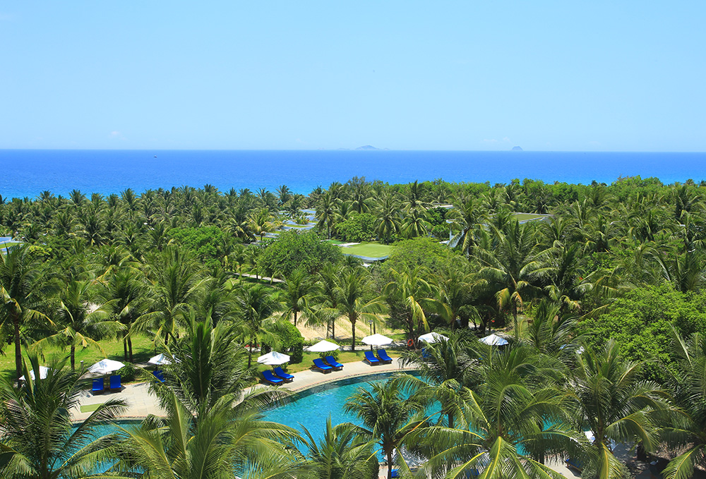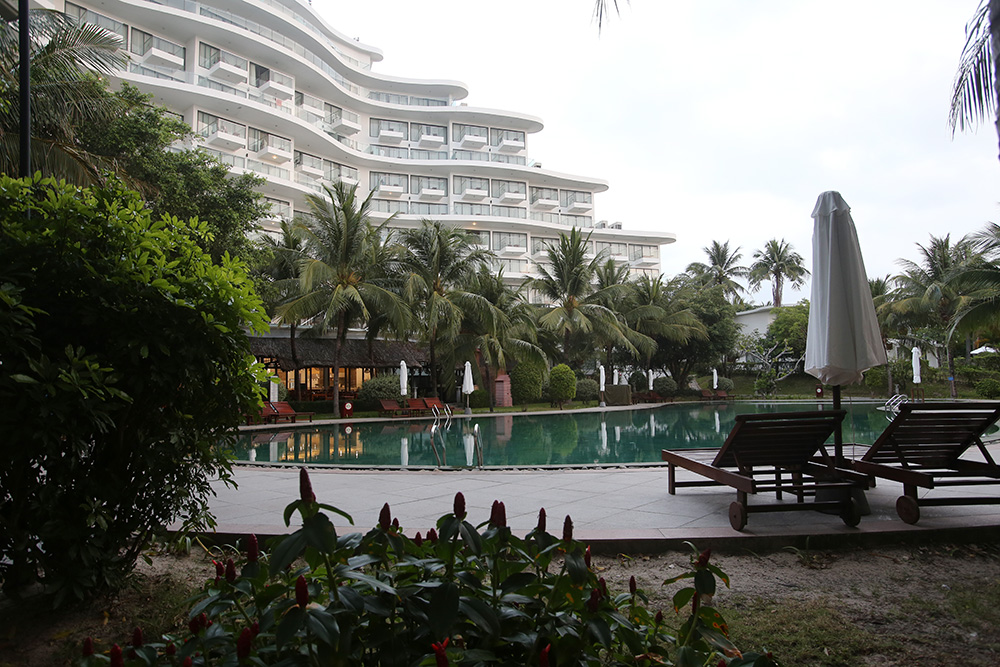 Mãi cho đến năm ngoái tôi được người bạn chở bằng xe máy từ Nha Trang qua Cam Ranh, dọc trên con đường vắng, tôi ngạc nhiên thấy quá nhiều khách sạn với những thương hiệu nổi tiếng – từ Radisson, Marriott cho đến Mélia hay Movenpick. Những toà nhà với thiết kế hiện đại cao sừng sững giữa trời xanh hoặc ẩn mình sau những bức tường đá, những rặng dừa cao vút. Tôi tự nhủ mình phải ra đây để biết thêm về nó.
