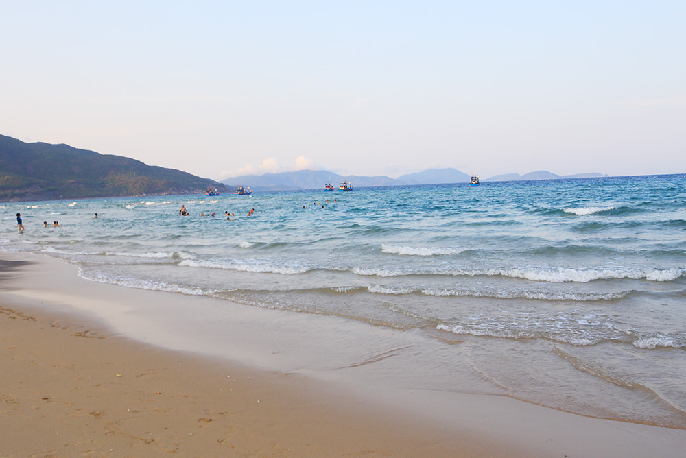 Ở xa trung tâm nhưng khách sạn có xe buýt đưa đón khách vào Nha Trang chơi, mua sắm chiều tối lại đón về, riêng tôi dành nhiều thời gian ngâm mình xuống dòng nước biển trong xanh đến lạ lùng của vùng một thời là đất cấm, nếm tí mùi mằn mặn của biển, nhắm mắt cho các đợt sóng đánh phủ mặt hoặc dựa theo sóng mà nhảy, sóng đưa lên và đẩy vào bờ nhẹ nhàng.