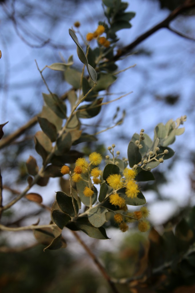 Ông anh quyết tìm ra cây hoa để chỉ cho tôi, xe cứ chạy loanh quanh dọc những con đường, lâu lâu thấy bụi cây quen thuộc, ông nói nó đó nhưng không thấy hoa. Chắc không đúng mùa, Mimosa nở nhiều vào những tháng cuối năm, tháng 11 là lúc hoa nở rộ. Mãi một lúc sau vô chùa, dọc cầu thang lên bảo tháp, may sao sót lại vài cây còn hoa.