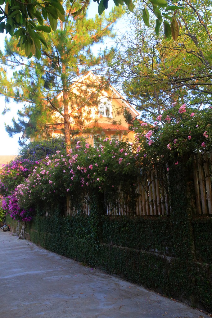 Thật ra trong chuyến đi kỳ này chúng tôi vô tình ở trong một khu phố nhỏ, nhiều hình ảnh mang tôi về lại với ký ức xưa, cũng những hàng rào hoa, nhưng giờ cao ngút đầu, cây phượng tím chơ vơ đầu đường, con đường vắng người qua lại phủ đầy xác hoa ngay khu biệt thự to đùng sang trọng.