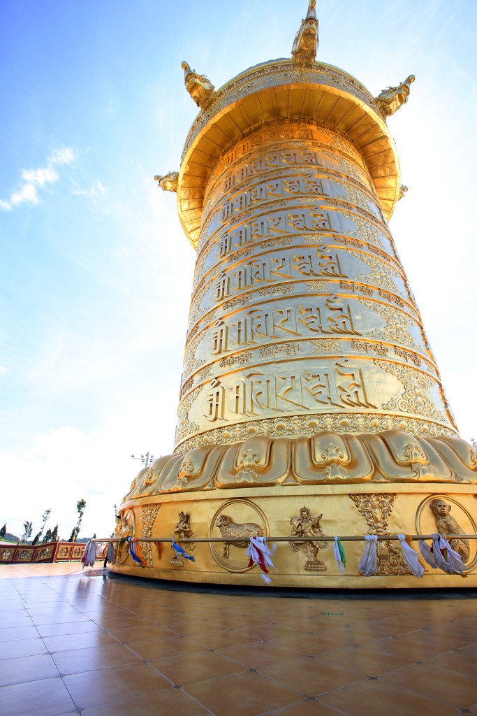 Khu du lịch rất vắng, lúc lên tháp chỉ có tôi và một gia đình với vài đứa bé, hình ảnh tháp làm tôi nhớ đến cây thiết bảng của Tôn Ngộ Không khi hoá to để chống Trời! Tháp to nhưng nhẹ nhàng quay theo sức người, nghe đâu đi một vòng bạn “sẽ được nhận những năng lượng từ trường an lành vô cùng tích cực, khiến tịnh hóa vô vàn nghiệp xấu và giúp thân tâm trở nên an lạc” và những điều kỳ diệu khác từ đại tháp, nếu biết trước tôi sẽ quay lâu hơn!