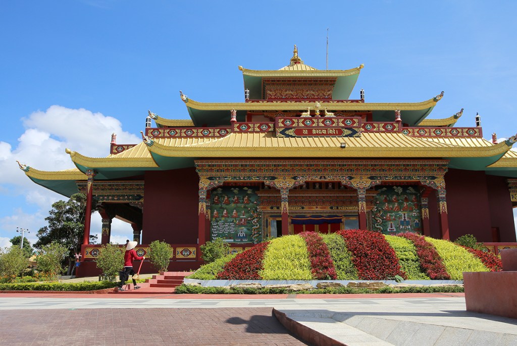 Tôi theo những bậc thang lên ngôi điện chính, công trình theo kiến trúc Tây Tạng, rực rỡ màu sắc dưới những bàn tay thiện nghệ của người thợ đến từ Nepal. Bên trong điện rất đẹp phủ đầy bích hoạ về cuộc đời, kiếp nạn của Phật, tôi không biết nhiều về tôn giáo, nhưng nhìn những bức tranh, sự hài hoà các màu sắc, nét vẽ, nhìn bắt mắt làm vui vẻ cả tâm trí. Tiếc là không được phép chụp hình bên trong. Loanh quanh một hồi, tôi không để ý đến thời gian, hoá ra bắt mọi người chờ dưới xe hơn cả tiếng!