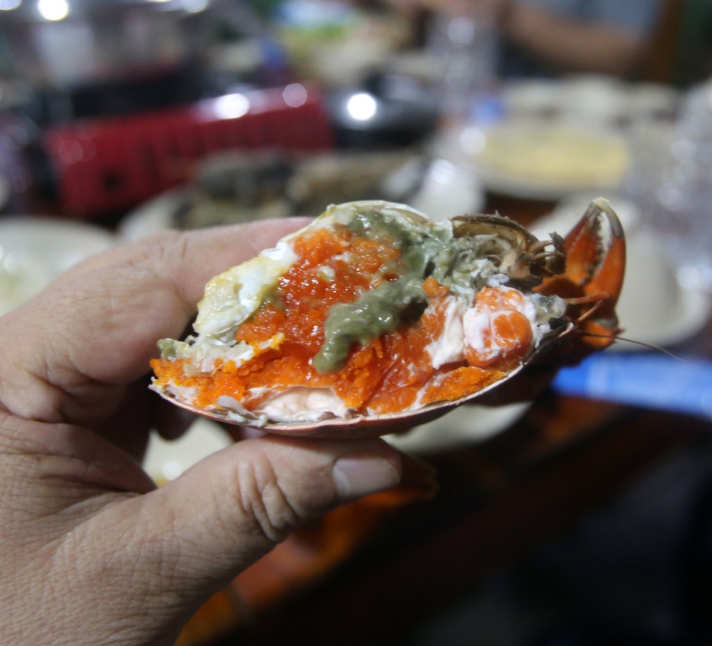 Đi chơi phải nói luôn đến chuyện ăn. Chưa bao giờ chúng tôi được ăn bắp vừa ngọt vừa dẻo, vừa nóng vừa thơm khi từng trái bắp được hái từ rẩy và luộc ngay trên đồng! Ngay cả mấy bà chị, kinh nghiệm ăn uống đầy mình cũng phải thú nhận bắp ngon quá! Đến Cà Mau phải ăn cua Cà Mau! Cua Cà Mau dạo này quá nổi tiếng dù tôi không thích ăn cua cũng phải tò mò! Thế là ở trạm dừng chân “Tư Tỵ” ở thị trấn Rạch Gốc, một trạm chơ vơ không đối thủ trên đường quay về từ Đất mũi, chúng tôi cuối cùng đã biết thế nào Cua Cà Mau trong tự nhiên – thịt chắc, gạch đầy, béo ngậy đến ớn!