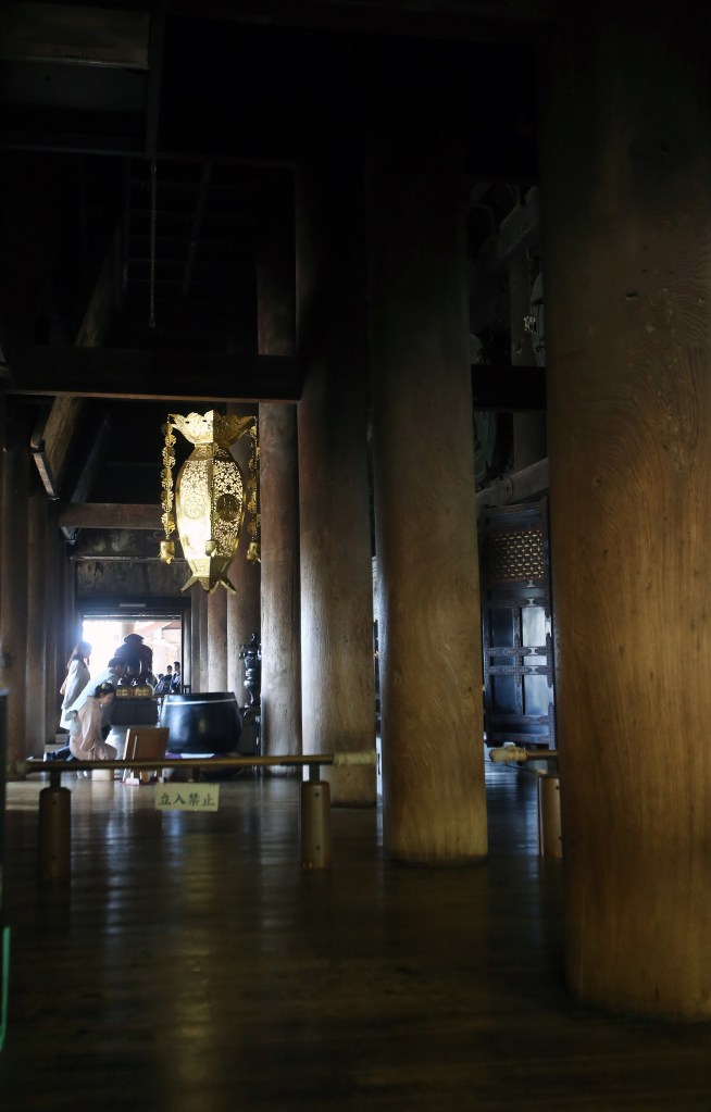 Dòng người cứ tiếp tục tràn về, đến lúc tôi phải mua vé vào đền, khách đông mà quày vé lại vắng, chắc ai cũng bận chụp hình ngoài vườn dưới những gốc cây phong đầy màu sắc! Thật ra vào đền, ngoài việc cầu bái, dân tình khó lòng mà selfie được với cảnh đẹp, vì khoảng không từ Okuno in Hall nhìn về phía Main Hall khá xa, lại toàn người bao kín lan can, chen chân vào cũng khó!