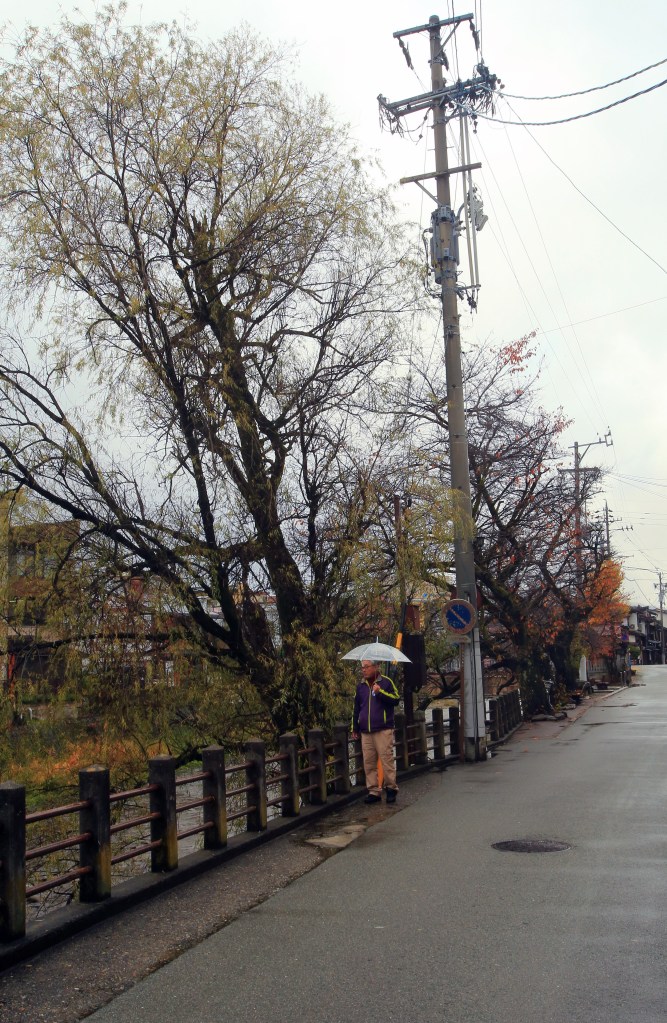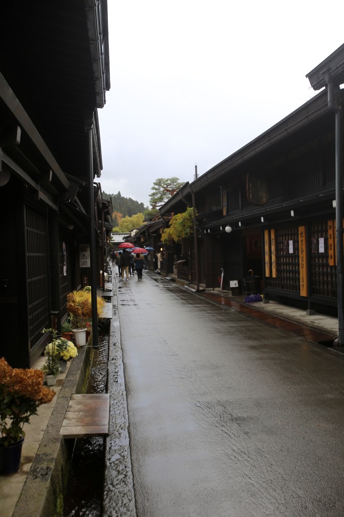 Trong hành trình đến khu làng nổi tiếng Shirakawa, tôi có ghé khu phố cổ Takayama, cách không xa ga tàu cùng tên, đi bộ khoảng tầm 10 phút hơn. Sáng hôm đó, tôi không có ý định đi đâu xa, nhưng cầm cái Rail pass (*), không đi thì uổng, nên thôi lên tàu ngồi gần 2 tiếng rưỡi, từ Nagoya đến Takayama, vừa đến nơi thì trời lại đổ mưa, lất phất nhưng đủ ướt đường, ướt người, may sao tôi vẫn còn cây dù mua trong cửa hàng tiện lợi ở Osaka.