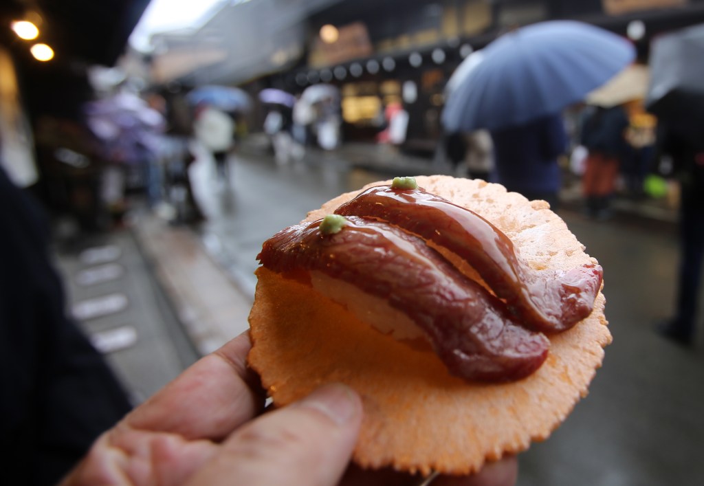 Đến khu phố cổ không thể không nói đến Sushi với bò Hida, loại thịt bò wagyu, rất rất nổi tiếng ở vùng Gifu này. Tôi không rành về thịt bò cho lắm, bò nào ngon, ngon sao so với bò kia thì chịu! Tôi chỉ ăn, nếu thấy mềm, dai nhẹ, thơm, không nặng mùi “bò”…chắc là ngon. Tra cứu sơ sơ trên mạng tôi lại không thấy bò Hida nằm trong những loại bò wagyu ngon nhất ở Nhật: bò Kobe, bò Matsusaka, bò Omi. Thôi thì thêm Hida vào cho thành Tứ đại bò ngon vậy!