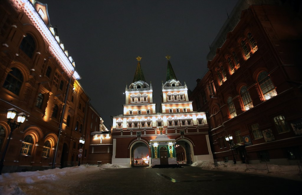 Khu hội chợ lung linh ánh đèn trong khi thánh đường Vasily lại chìm trong bóng đêm, dãy tường thành điện Kremlin cũng khá mờ nhạt, dù vậy hai công trình kiến trúc này và ngay cả toà nhà màu đỏ, viện bảo tàng lịch sử quốc gia, vẫn nổi bật nhờ nét kiến trúc độc đáo, khu lăng mộ Lênin có phần khiêm nhường, lặng lẽ khép bên vách điện Kremlin, tôi suýt nữa không để ý khi đi ngang qua, do tiệp màu lại thêm trong cái ánh sáng mờ mờ ảo ảo mùa Đông.