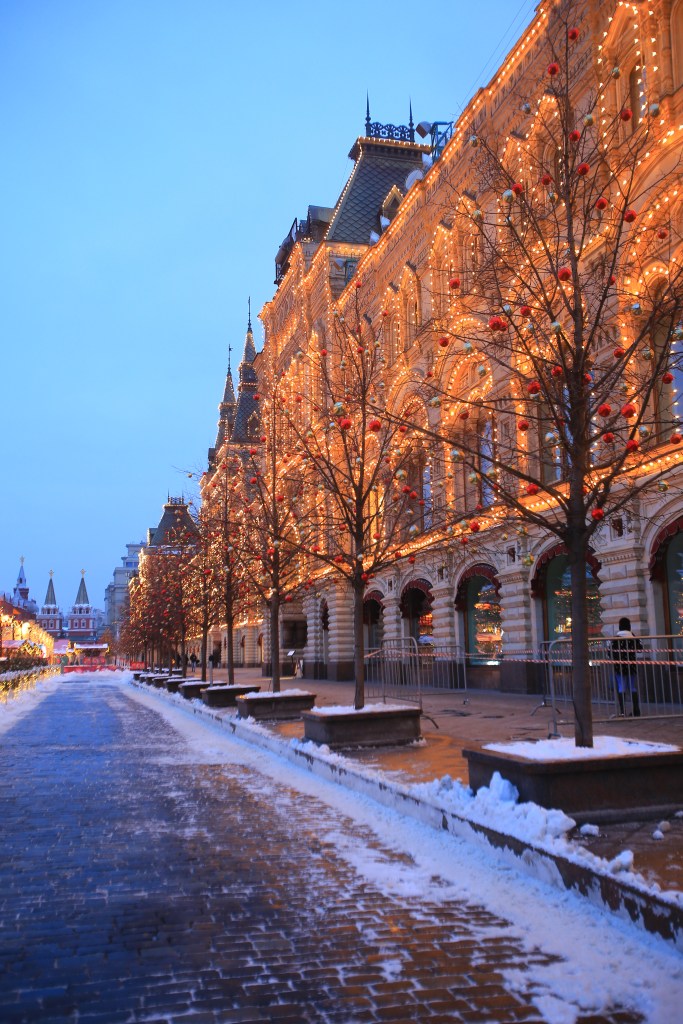 Vừa bước qua cổng, cả một khu rộng lớn như hội chợ Giáng Sinh, rực sáng các ánh đèn màu lấp lánh, vòng đu quay, các gian hàng…ập vào mắt tôi. Chút ngỡ ngàng vì nhớ Giáng Sinh hay Năm Mới qua lâu rồi, hoá ra GUM, khu thương mại lớn, sang trọng bậc nhất thủ đô và của cả nước, kỷ niệm 130 năm tồn tại, một trong những “shopping mall” cổ nhất của thế giới! Vậy mà tôi vẫn chưa có dịp đặt chân vào!