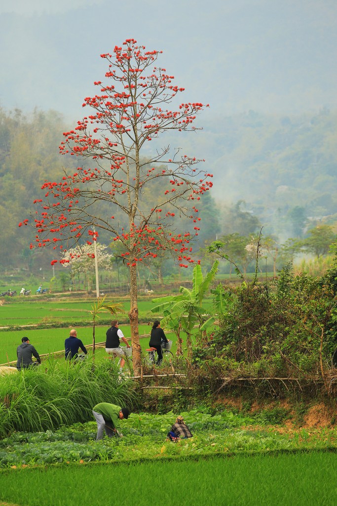 Tôi đặc biệt thích đoạn đường này, chắc vì ngay trước ban-công phòng, nên từ sáng đến chiều tối, tôi chứng kiến cuộc sống diễn ra trên đó. Người hối hả ra ruộng cùng mấy con chó nhà, đôi vợ chồng chăm chỉ chăm sóc vườn rau sát cây San Hô hoa đỏ, chiều về có bác đi cắt cỏ cho bò, thỉnh thoảng khách Tây lại đạp xe ngang…