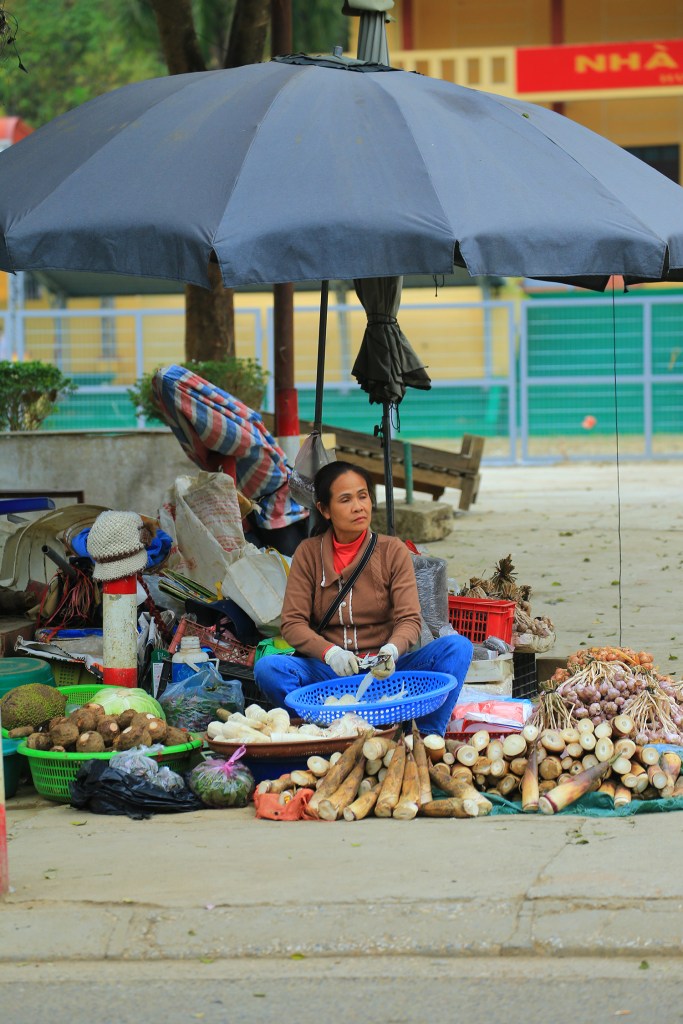 Ở Mai Châu, chợ chỉ họp vào cuối tuần, nhưng quanh chợ sáng nào dân đều bày bán đủ thứ, nhiều nhất là gà, măng rừng, rau rừng…Thấy hai cụ ngồi ven đường với mớ rau, rổ trứng…cả hai đang hào hứng hàn huyên, tôi hỏi mua trứng, bà nói ngay 5000 một quả, rồi chẳng màng khách mua hay không, vội quay qua nói tiếp câu chuyện dang dỡ.