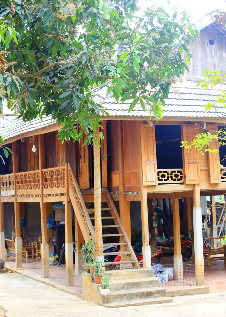 Ngày cuối cùng tôi có nguyên một buổi sáng, tôi đi tiếp đoạn đường chưa đi. Cuộc sống ở đây thay đổi hằng ngày, xen giữa những ngôi nhà sàn với màu gỗ đã bạc, nhiều ngôi nhà khác mới đang xây, gỗ tươi rói với màu sơn cánh gián, hay toàn gạch. Khoảng sân bên dưới giờ được lót gạch hoa, có bộ ghế gỗ cầu kỳ như phòng khách, không còn là nơi giữ súc vật hay nhà kho như trước.