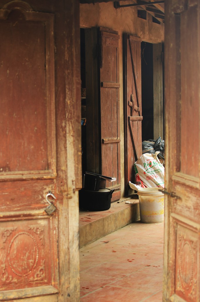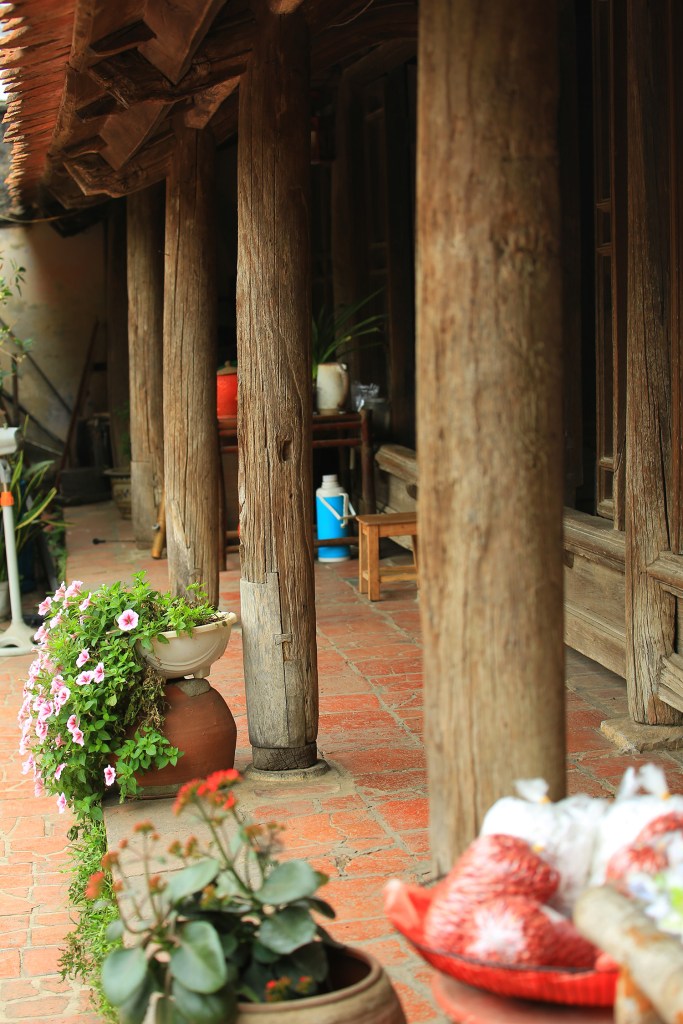 Trong sân có một cụ bà ngồi dưới sàn nước loay hoay rửa chén bát, bà nhìn tôi, cái nhìn như quá quen với những người khách lạ, hay tò mò vào xem nhà. Nhà ông bà ít nhiều được sửa sang, nhưng giữ được nét truyền thống xưa – ngôi nhà ba gian nằm giữa, các gian thêm hai bên. Hai ông bà cụ tiếp tục nói chuyện với nhau, tôi im lặng nhìn quanh, rồi xin phép đi ra.