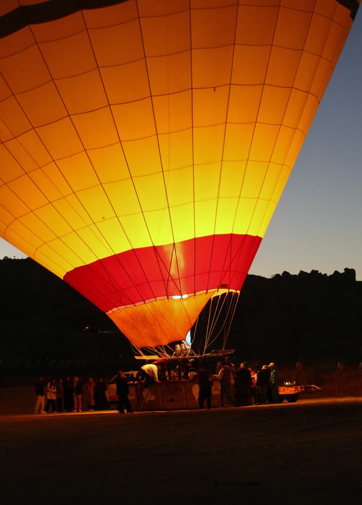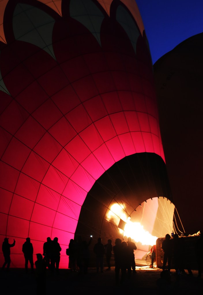 Lần đầu tiên tôi thấy nhiều khinh khí cầu đến như vậy, đứng gần chúng mới thấy chúng to như thế nào, như toà nhà 7-8 tầng (20-25m) ! Có những quả cầu vào đủ khí, dựng thẳng, có những quả vẫn chưa đủ, còn nằm trên mặt đất. Theo lịch các khinh khí cầu sẽ lần lượt bay lúc 6g00 để kịp đón ánh bình minh.