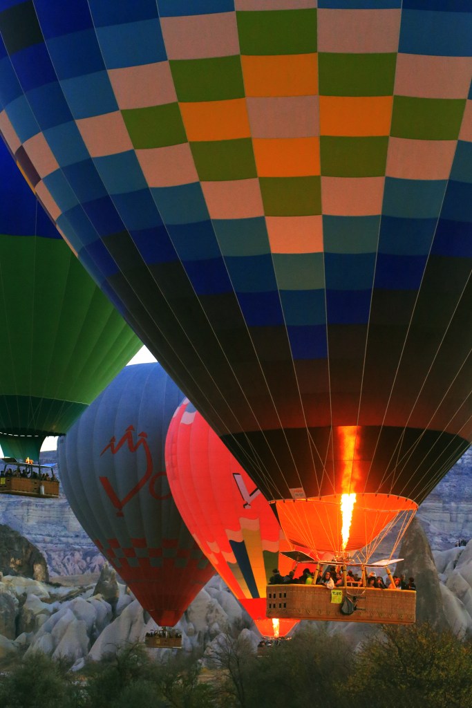 Và cuối cùng những quả cầu từ từ bay lên, nối đuôi nhau, tạo nên một quanh cảnh vô cùng ngoạn mục! Trời sáng dần, ánh bình minh lấp ló sau thung lũng đá, nơi có khu vực dành cho khách nào chịu khó leo lên đón những tia sáng đầu tiên của ngày!