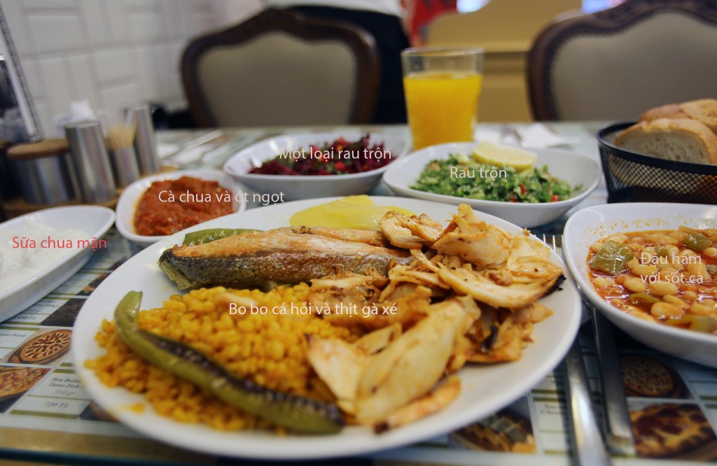 Tôi đã trả gần 100 đô cho một bữa ăn trưa, tôi đoán giá sẽ cao khi thấy mấy du khách ngồi gần phản ứng với tờ hoá đơn, nhưng không ngờ cao đến vậy! Ẩm thực Thổ, ngoài món chính, có nhiều side dish (món ăn kèm) thường là các loại sa-lát, đậu…Đầu bếp vui vẻ mời nhiều loại khác nhau, bạn cũng vui vẻ tò mò thử cho đến khi thấy tờ giấy nhỏ dán dưới quầy thức ăn “Salat tính thêm tiền” và giá gần bằng món chính.