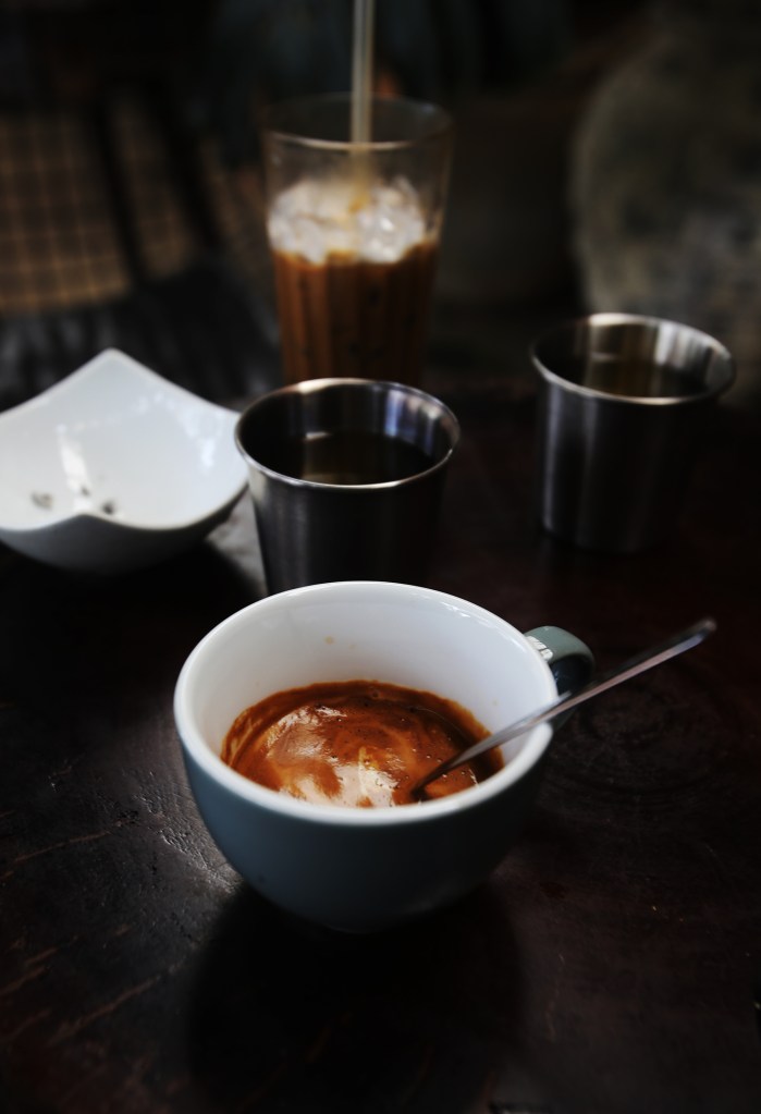 Tôi nói với Hiếu, anh em mình ghé đâu uống cà phê. Hiếu là dân nghiện cà phê, chỉ uống cà phê tươi, ý là cà phê vừa xay xong cho vào máy pha. Tôi kêu ly cà phê sữa nóng. Cà phê trên đây đậm vị, thơm, tôi xin thêm tí sữa đặc cho nhẹ bớt vị đắng!