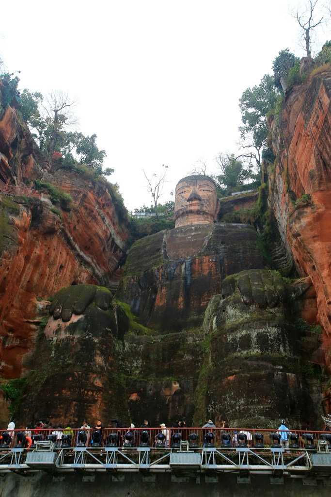 Lạc Sơn Đại Phật được tạc vào vách núi Lăng Vân nằm về phía Nam tỉnh Tứ Xuyên, đối diện là ngọn núi nổi tiếng nếu ai mê kiếm hiệp Kim Dung đều biết – núi Nga Mi (có dịp tôi sẽ kể về chuyện đi núi Nga Mi vào một sáng âm u đầy tuyết và gió nhưng khi lên tới đỉnh, cao hơn 3000m, lại là một không gian của mùa Xuân!)