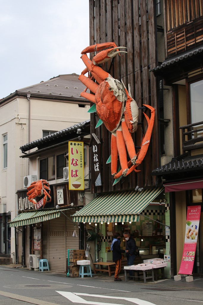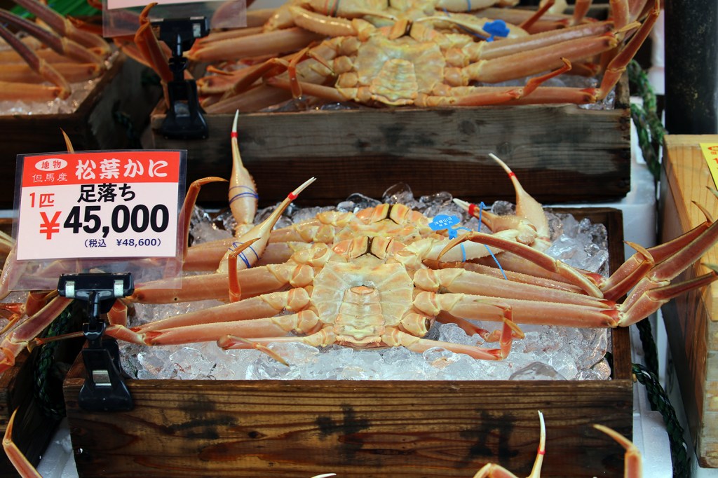 Tôi đến Kinosaki vào đầu tháng 12, chưa vào mùa cao điểm nên dễ dàng có ngay một phòng “suite” trong một ryokan chỉ cách ga xe lửa chưa tới 5 phút đi bộ, trước mặt toàn là nhà hàng với đặc sản cua tuyết nổi tiếng.